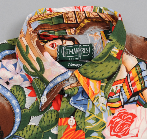 Short Sleeve Button-Down Collar Shirt, "Tijuana Pinup" Print