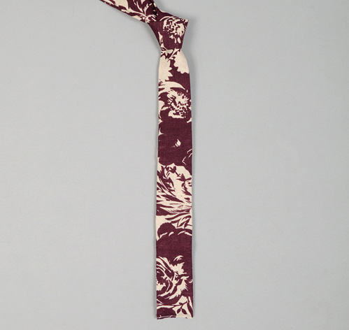 N57-132 - Washed Linen Floral Print Tie, Burgundy